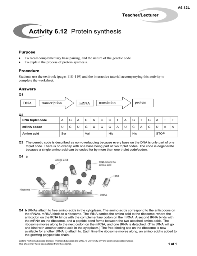 Activity 6 12 Protein Synthesis
